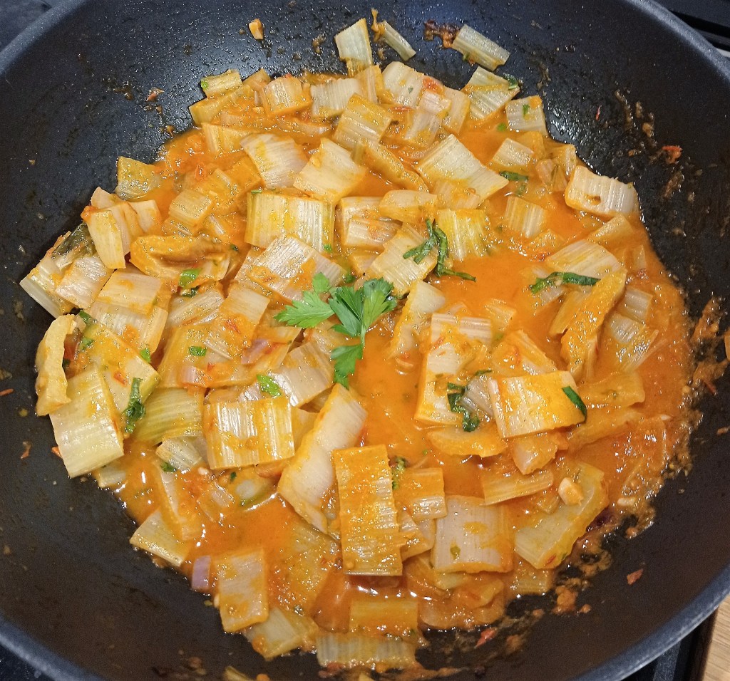 - 250 g de côtes de blettes (garder le vert pour une autre recette)