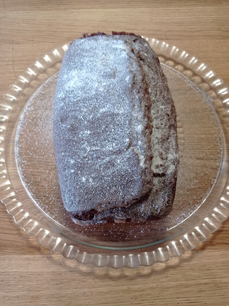 Versez dans un moule à cake. Mettre au four 15 min à 180°C, puis 25 min à 150°C.