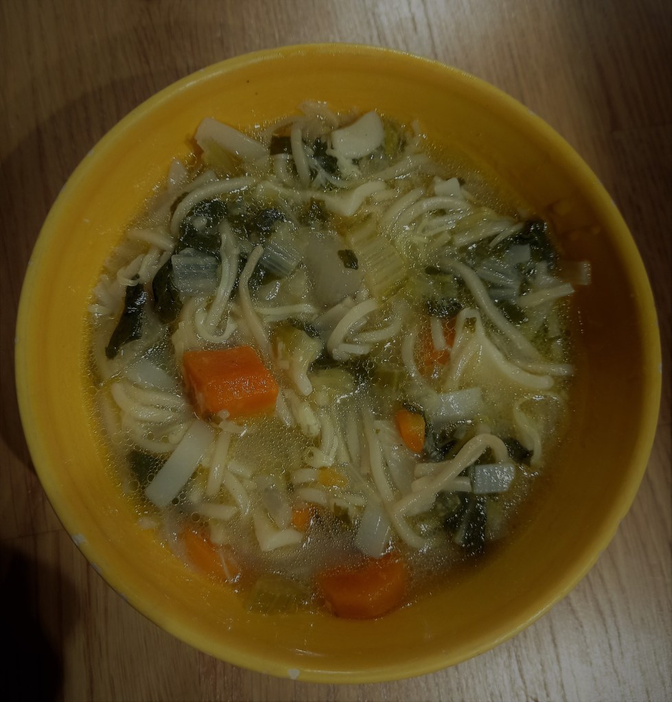 Ajouter le sel et les pâtes. Cuire le temps indiqué sur le paquet. Servir la soupe avec un filet d’huile d’olive et le parmesan.