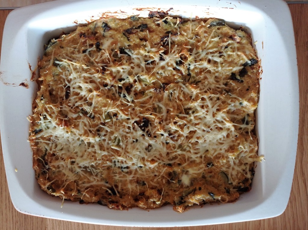 Verser la préparation dans un plat allant au four. Parsemer du reste du parmesan.