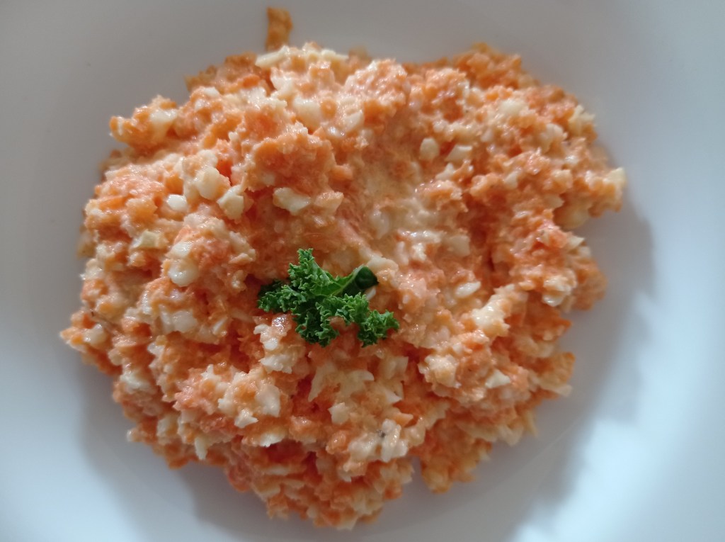 1/ Râper 3 carottes (vous pouvez aussi les mixer très légèrement dans un blender si vous n’avez pas de râpe).