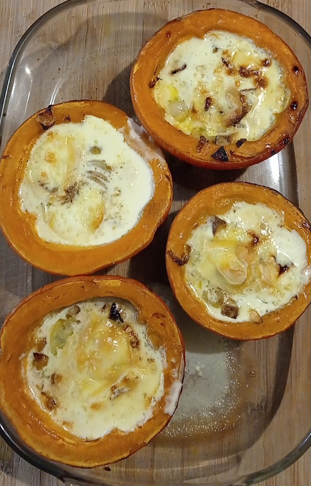 3/ Préchauffez le four à 180°. Coupez le fromage en tranches épaisses. Garnissez chaque moitié de potimarron avec la préparation de lardons et oignons, puis placez une tranche généreuse de reblochon dessus. Enfournez pour 25 à 30 min.