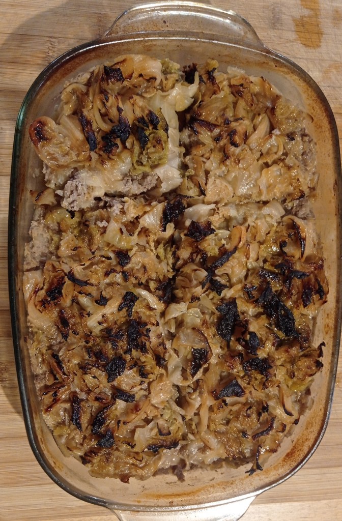 3/ Préchauffer le four à 180°. Mélanger la moitié du chou avec la viande. Dans un moule à gratin beurré, disposer la farce, puis, le reste de chou sur le dessus.